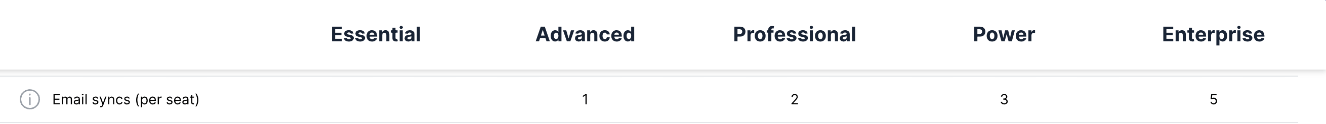Bis zu 5 Email-Accounts können pro Nutzer in Pipedrive angebunden und gleichzeitig genutzt werden. Die Anzahl an parallel nutzbaren Account hängt vom gekauften Plan ab (Stand Januar 2026):