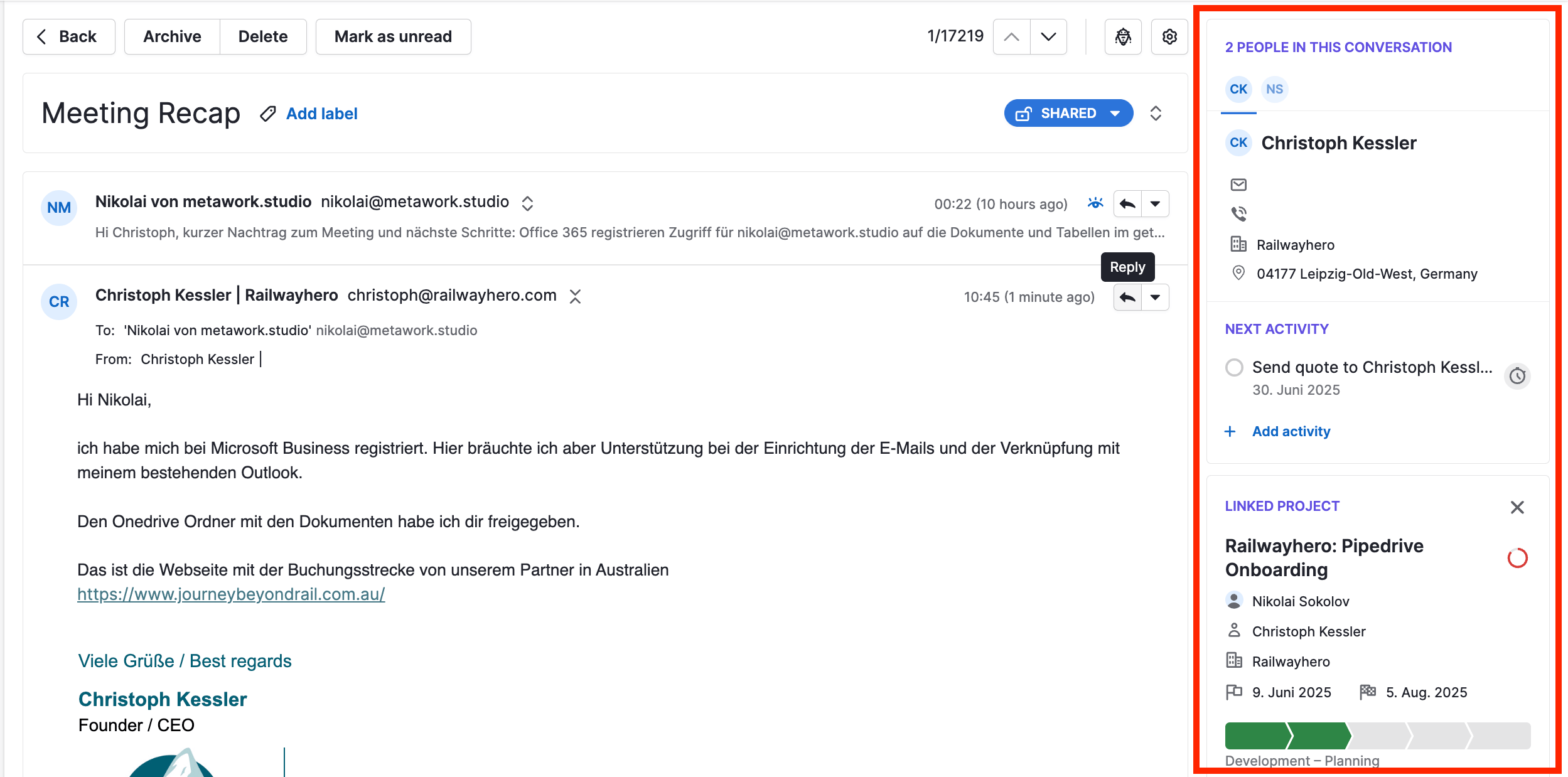 Verknüpfung von Emails mit Kontakten, Leads, Deals und Projekten