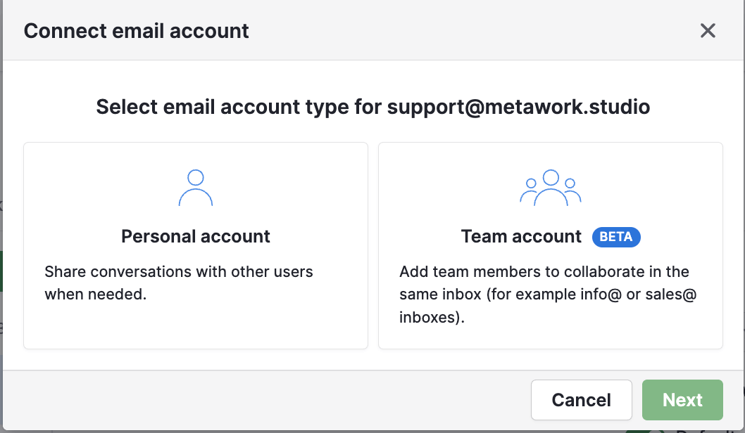 Bei der Einrichtung von Email Accounts kannst du zwischen persönlich und Teampostfach wählen: