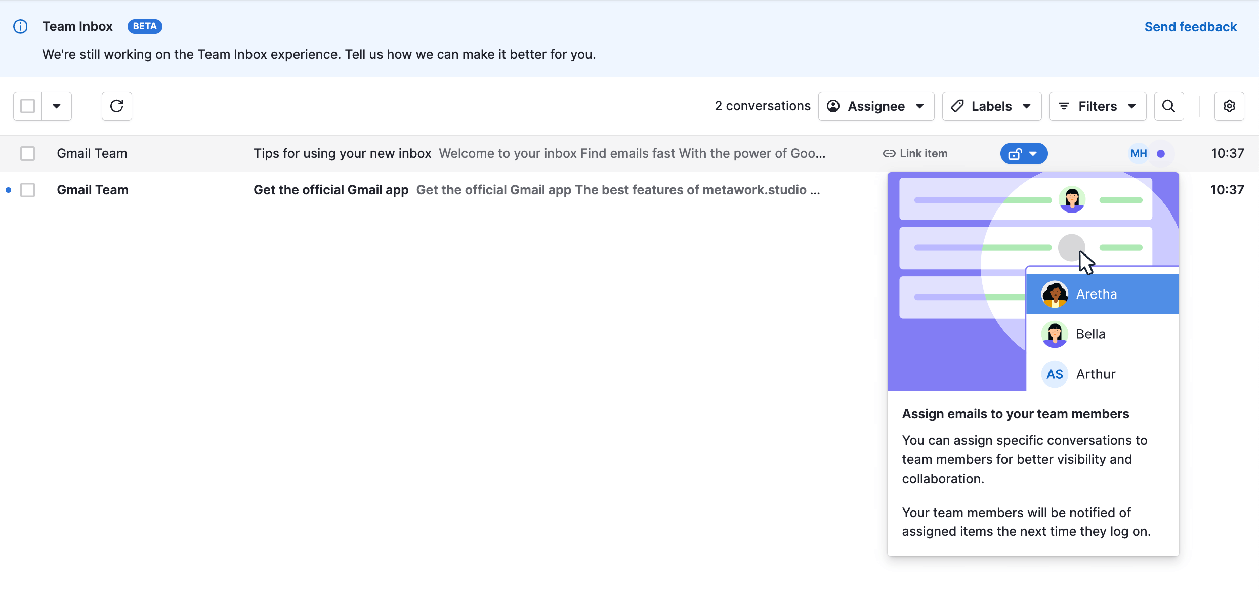 Bei Teampostfächern kann ein ganzes Team die Emails lesen, versenden, verlinken und vor allem einander als “Aufgabe” zuweisen.