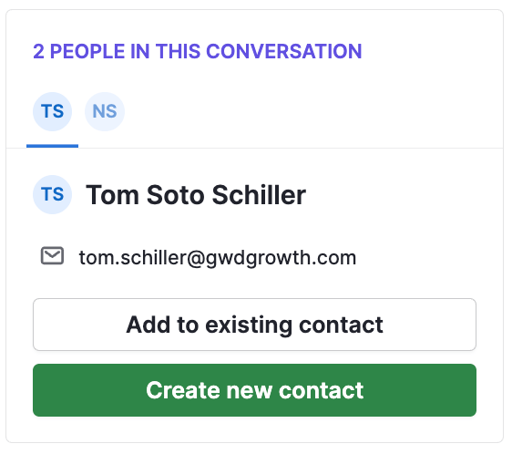 Oder in Sales Inbox auf die gewünschte Email klicken und in der rechten Sidebar nachschauen, ob dazu Kontakte gefunden wurden. Sind da Buttons um die Email einem bestehenden oder neuen Kontakt hinzuzufügen, ist der Kontakt nicht in Pipedrive: