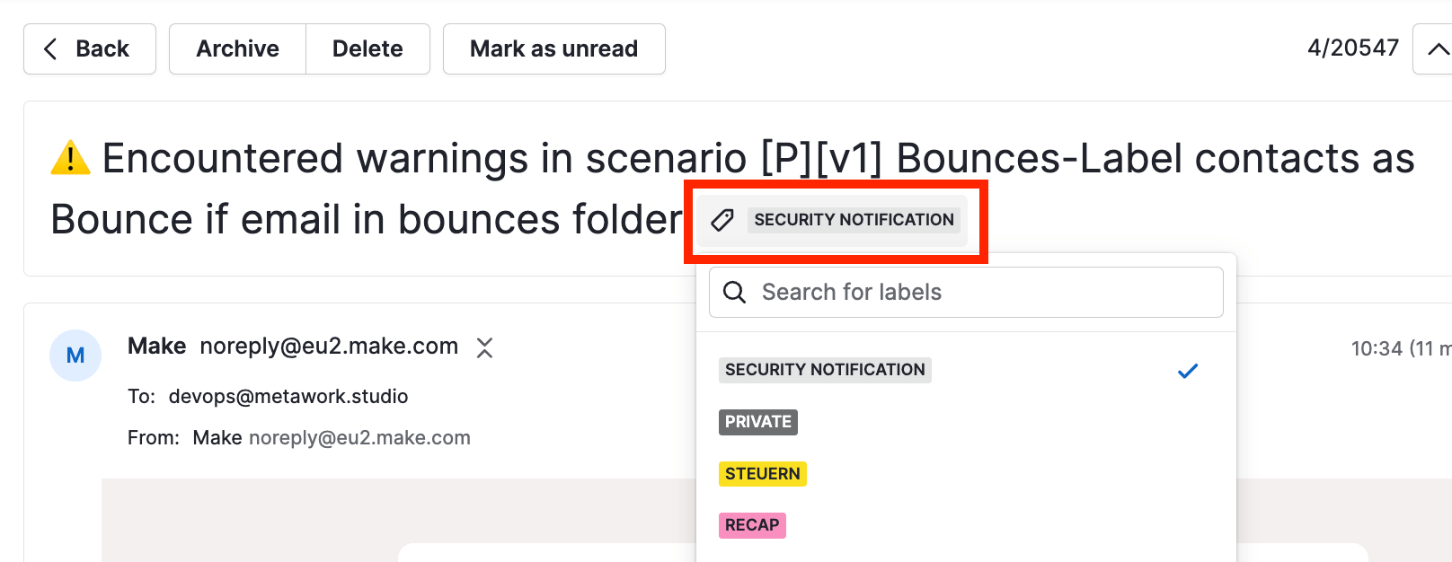 Labels für Emails vereinfachen visuelle Suche nach bestimmten Emails und ermöglichen schnelles Filtern. Diese Labels werden nur in der Sales Inbox angezeigt.