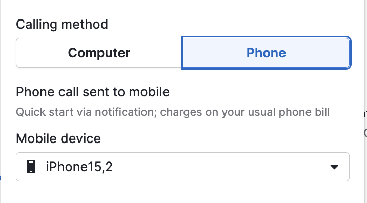 - Klicke in der Pipedrive-Browser-App auf den Dropdown-Pfeil neben dem Telefon