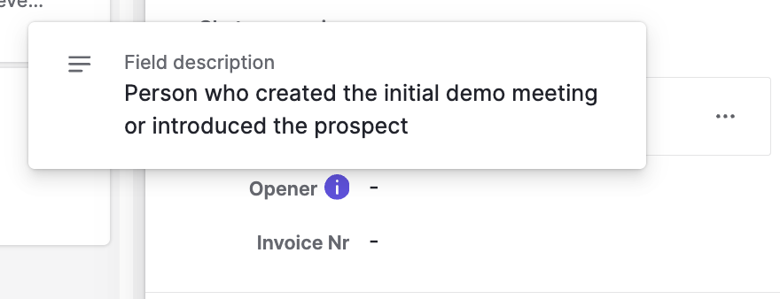 Wenn ein Feld neu erstellt und als wichtig oder erforderlich gekennzeichnet wird, hilft die Beschreibung dem Team, seinen Zweck zu verstehen und das Feld korrekt auszufüllen.