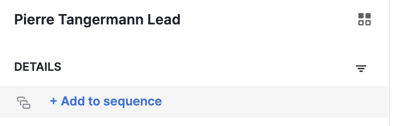 Du musst explizit eine Lead-Sequenz erstellen, woraufhin die reguläre Option „Zur Sequenz hinzufügen“ in Leads verfügbar ist: