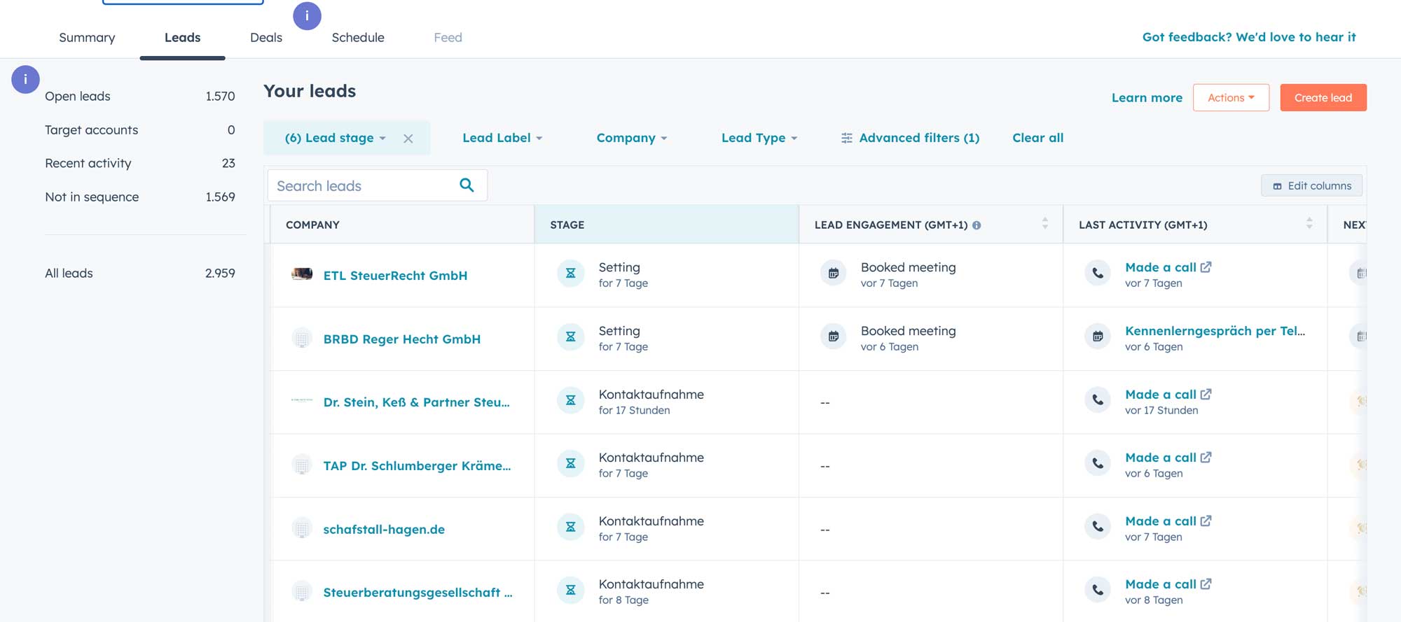 • Leads abarbeiten
