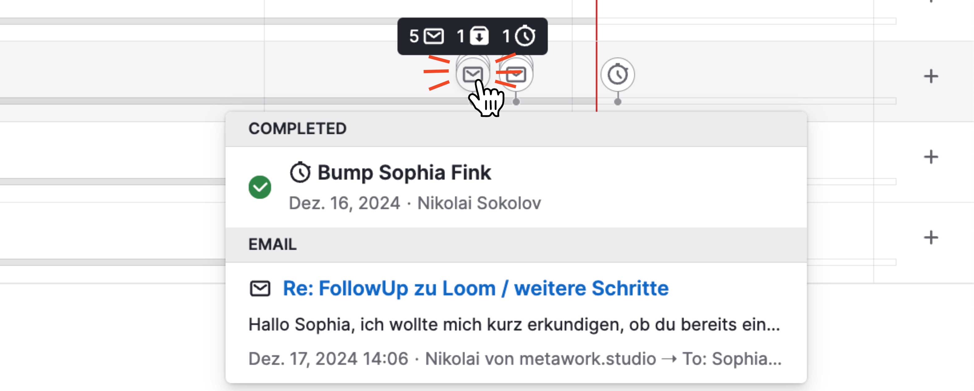 Bei laufenden Projekten ist es wichtig, keine Kundenfragen zu vergessen. Im Postfach kann’s schnell unter gehen, aber mit der Timeline siehst du sofort, wer auf eine Antwort wartet.