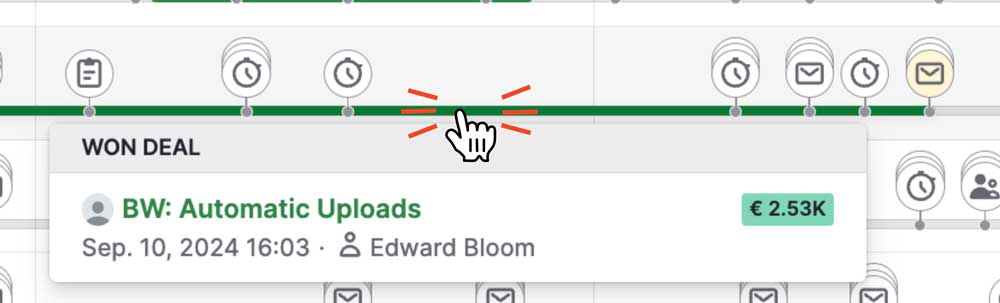 Im Wesentlichen ist die Timeline eine Kontakthistorie, die vergangene Ereignisse zusammenfasst und sie übersichtlich auf einer Zeitleiste platziert.