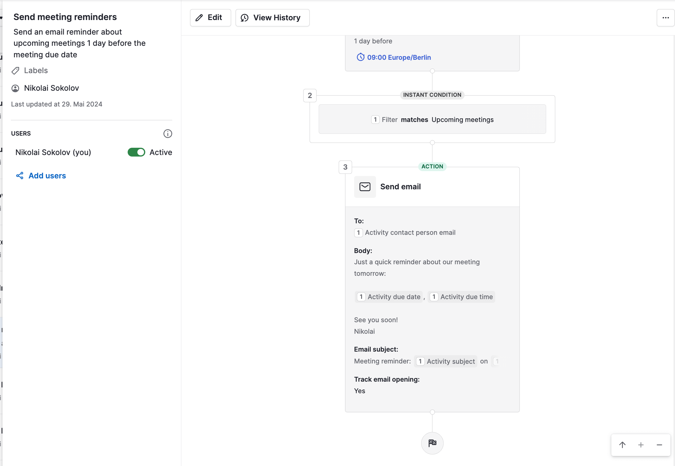 There are cases that cannot be implemented in Pipedrive, even though email automation is quite advanced.