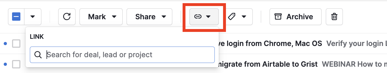 - Select all the emails that need to be linked to a deal